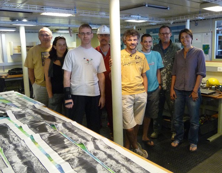 L'équipe du quart 4-8 : Daniele Brunelli, Adrien Bronner, Roger Searle, Adélie Delacour, Dominique Birot, David White et Arnaud Le Ridant.